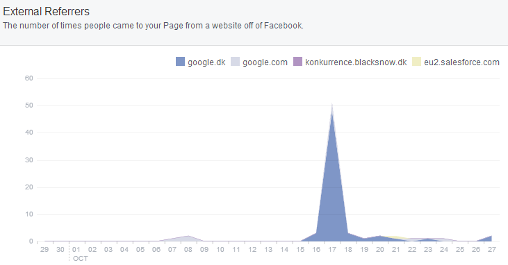 Til gengæld var der besøg til vores facebookside fra andre sider end facebook. På den gode side af 50 fra Google.