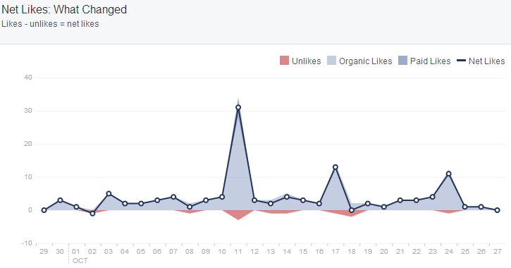 Blacksnows Facebookside fik hele 12 nye likes. Det er ubetydeligt sammenlignet med vores nuværende 5.000 nuværende likes – men vi tager hvad vi kan få. Der har ikke væren nogen positiv effekt efterfølgende. Bemærk at det største spike er et andet post (dog relateret til Operation X). Udsendelsen var 17. oktober.